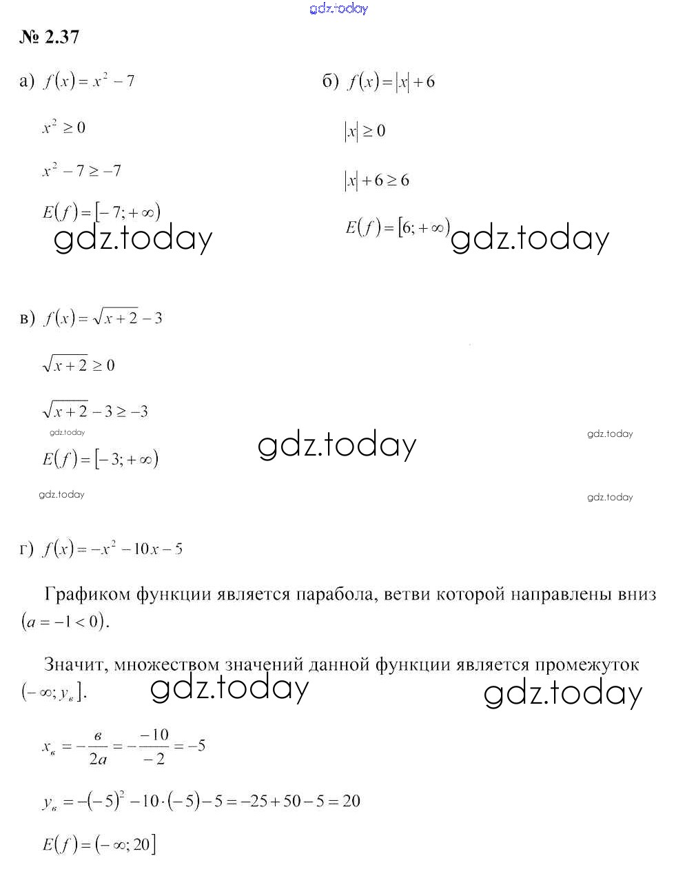 На страницах сайта gdz.today вы найдете учебный и вспомогательный материал, направленный на улучшения знаний школьной программы. ГДЗ - онлайн мир знаний Задания Решение к главе 2 2.37 Учебнику по Алгебре для 9 класса Арефьева, Пирютко Народная асвета 2019