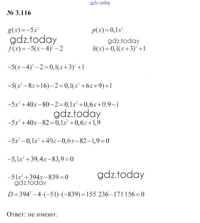 На страницах сайта gdz.today вы найдете учебный и вспомогательный материал, направленный на улучшения знаний школьной программы. ГДЗ - онлайн мир знаний Задания Решение к главе 3 3.116 Учебнику по Алгебре для 9 класса Арефьева, Пирютко Народная асвета 2019
