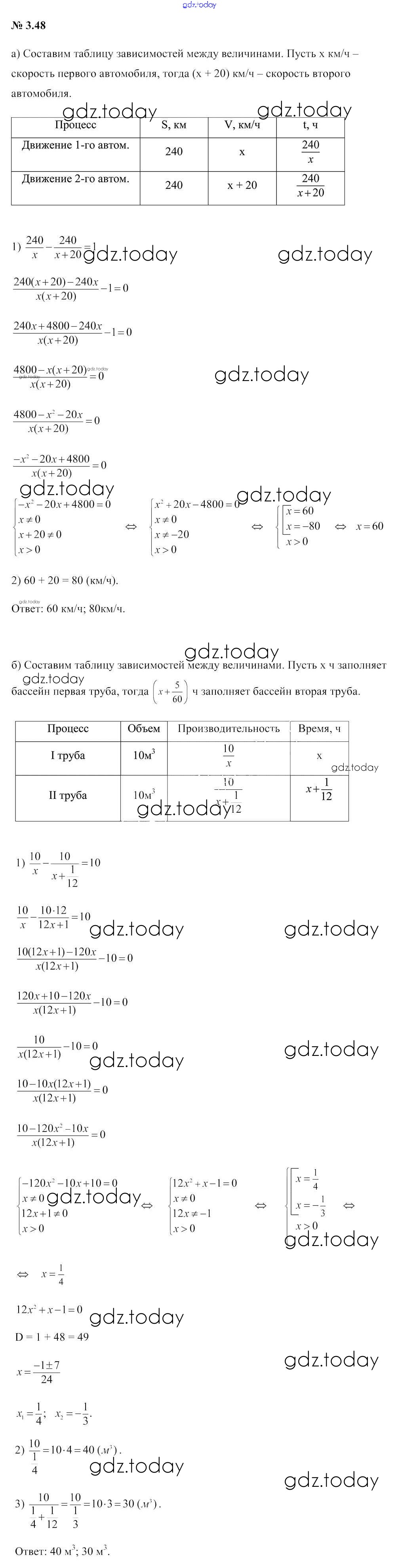 Ответы к Задания Решение к главе 3 3.48 Учебнику по Алгебре для 9 класса Арефьева, Пирютко Народная асвета 2019