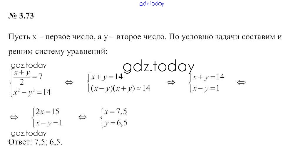 Ответы к Задания Решение к главе 3 3.73 Учебнику по Алгебре для 9 класса Арефьева, Пирютко Народная асвета 2019