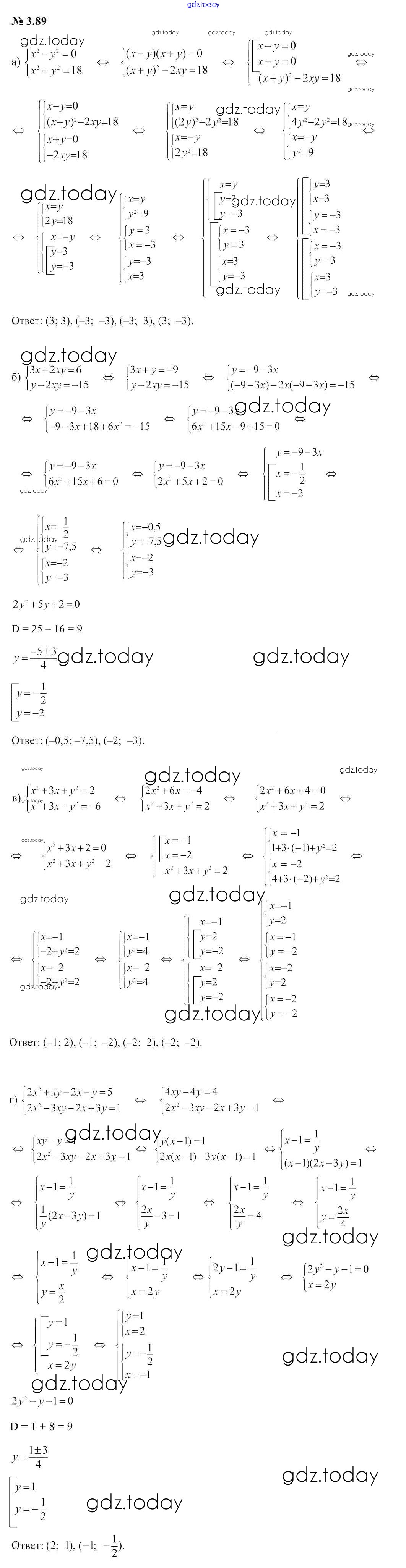 Ответы к Задания Решение к главе 3 3.89 Учебнику по Алгебре для 9 класса Арефьева, Пирютко Народная асвета 2019