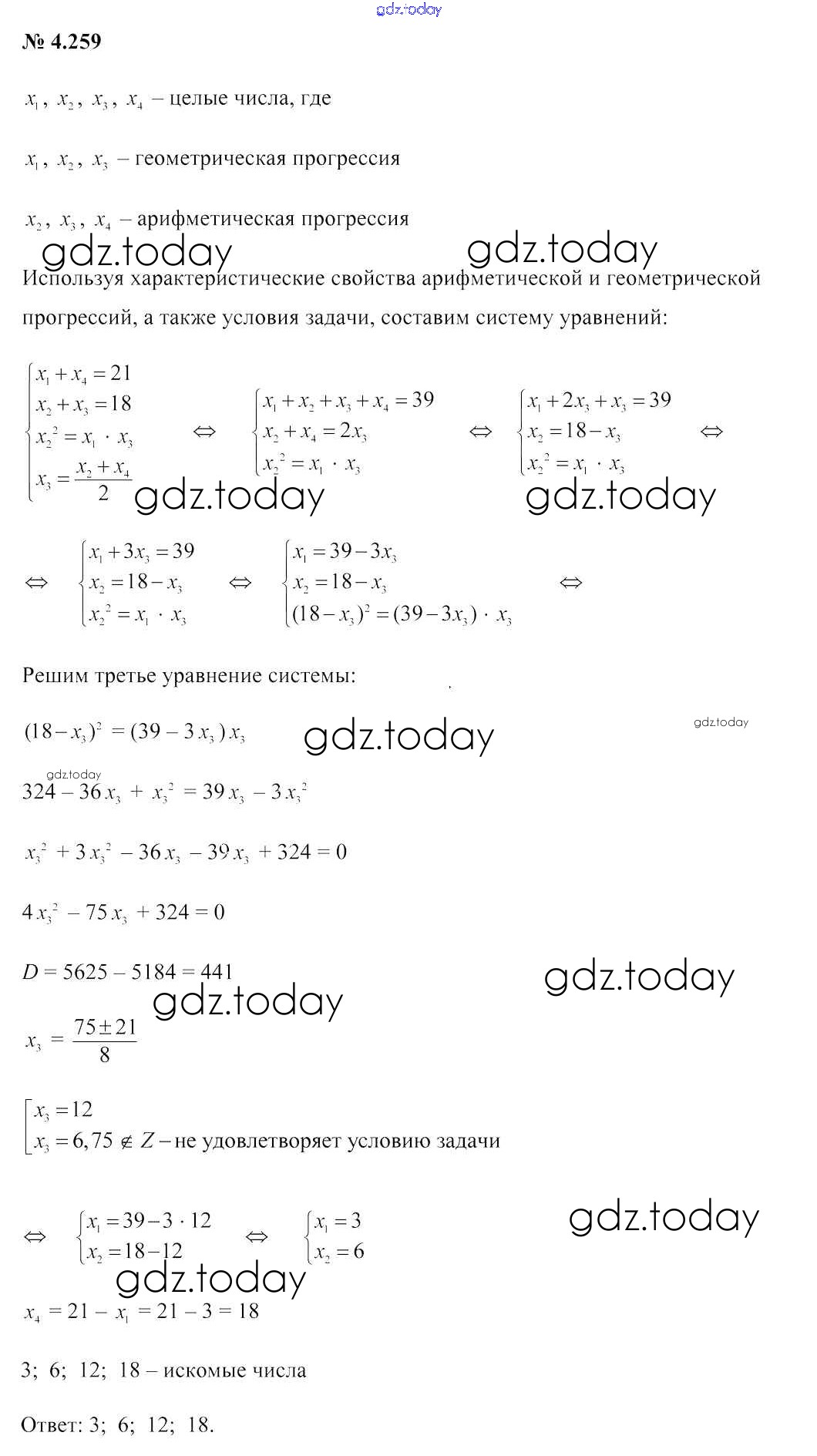 Ответы к Задания Решение к главе 4 4.259 Учебнику по Алгебре для 9 класса Арефьева, Пирютко Народная асвета 2019