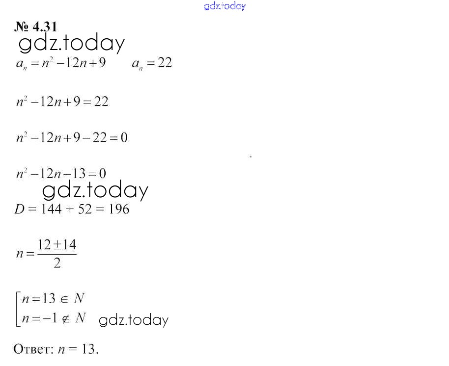 Ответы к Задания Решение к главе 4 4.31 Учебнику по Алгебре для 9 класса Арефьева, Пирютко Народная асвета 2019