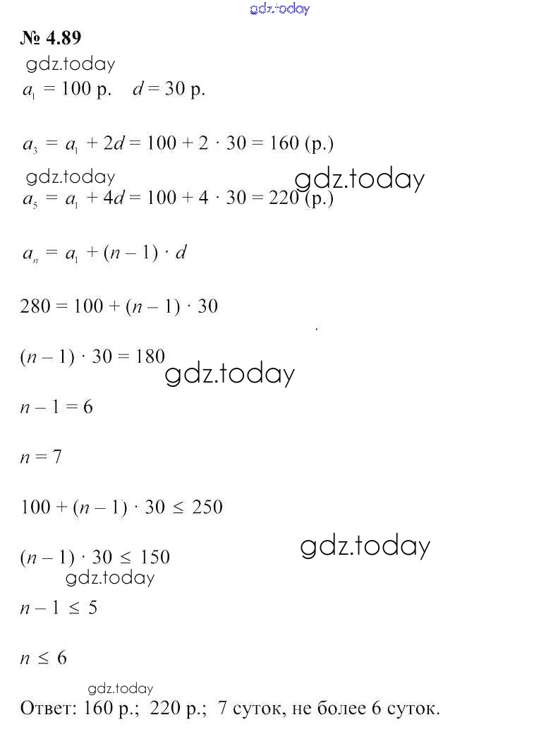Ответы к Задания Решение к главе 4 4.89 Учебнику по Алгебре для 9 класса Арефьева, Пирютко Народная асвета 2019