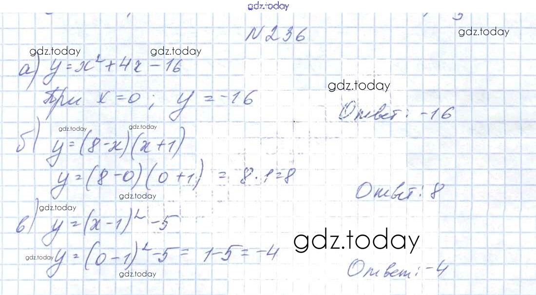 На страницах сайта gdz.today вы найдете учебный и вспомогательный материал, направленный на улучшения знаний школьной программы. ГДЗ - онлайн мир знаний Решение к итоговому повторению 235 Учебнику по Алгебре для 9 класса Арефьева, Пирютко Народная асвета 2019