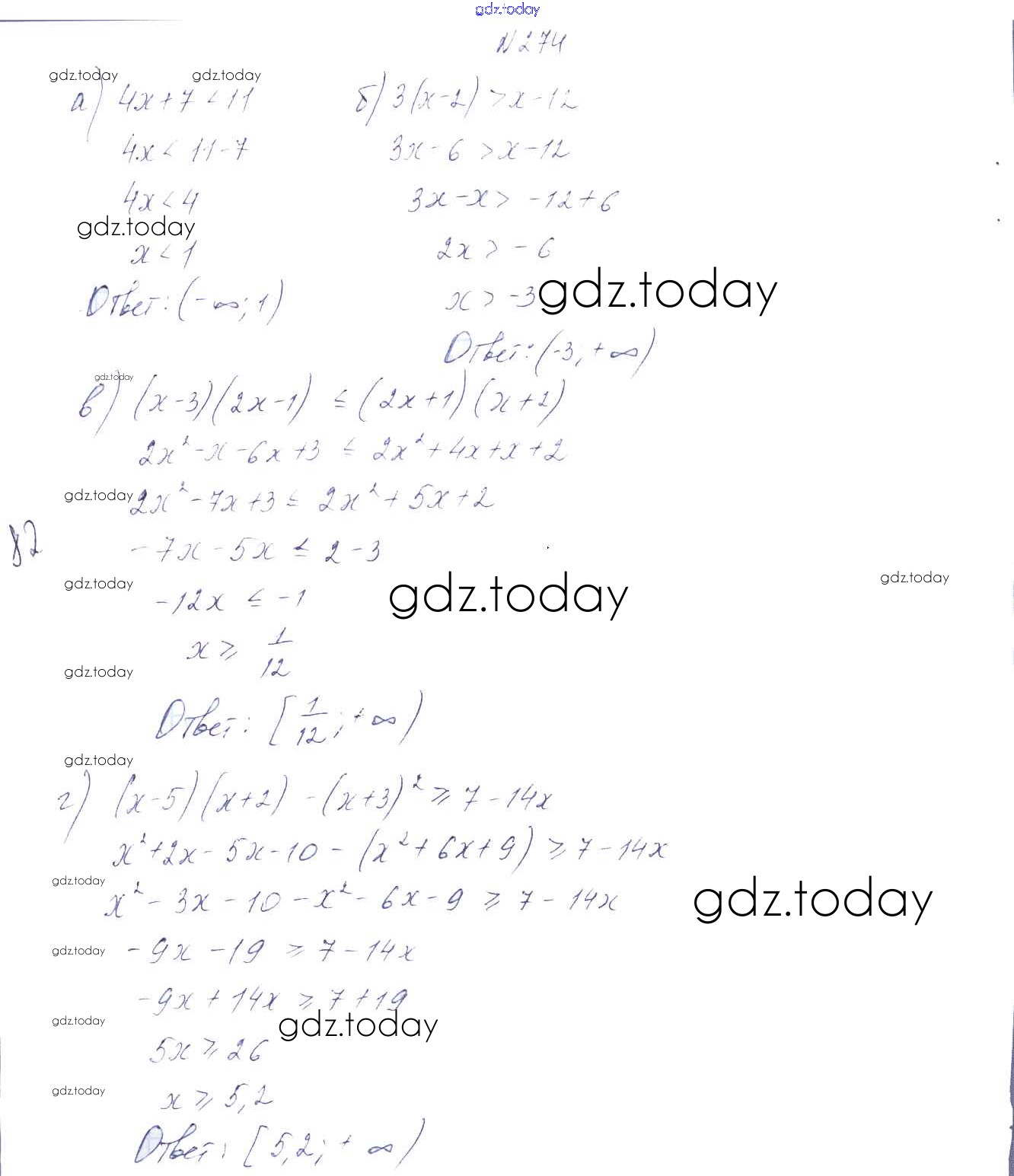 Ответы к Решение к итоговому повторению 274 Учебнику по Алгебре для 9 класса Арефьева, Пирютко Народная асвета 2019