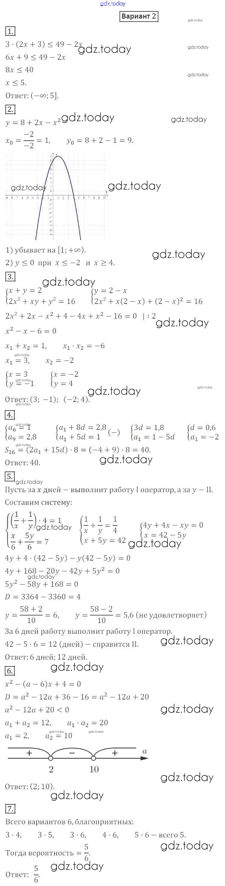 Ответы к КР-6 Решение к контрольным работам 2 Дидактическим материалам по Алгебре для 9 класса Мерзляк, Полонский Вентана-граф Алгоритм успеха 2017