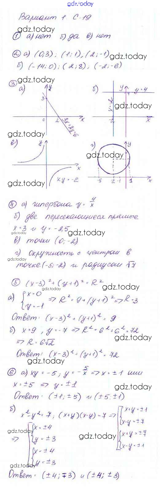 На страницах сайта gdz.today вы найдете учебный и вспомогательный материал, направленный на улучшения знаний школьной программы. ГДЗ - онлайн мир знаний Вариант 1 Решение к самостоятельным работам C-19 Дидактическим материалам по Алгебре для 9 класса Макарычев, Миндюк Просвещение 2015