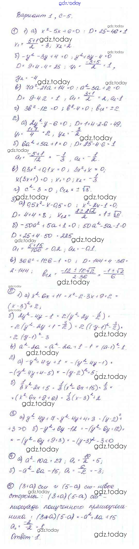 На страницах сайта gdz.today вы найдете учебный и вспомогательный материал, направленный на улучшения знаний школьной программы. ГДЗ - онлайн мир знаний Вариант 1 Решение к самостоятельным работам C-5 Дидактическим материалам по Алгебре для 9 класса Макарычев, Миндюк Просвещение 2015