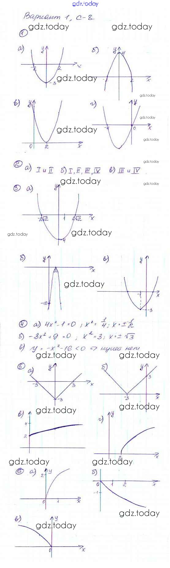 На страницах сайта gdz.today вы найдете учебный и вспомогательный материал, направленный на улучшения знаний школьной программы. ГДЗ - онлайн мир знаний Вариант 1 Решение к самостоятельным работам C-8 Дидактическим материалам по Алгебре для 9 класса Макарычев, Миндюк Просвещение 2015