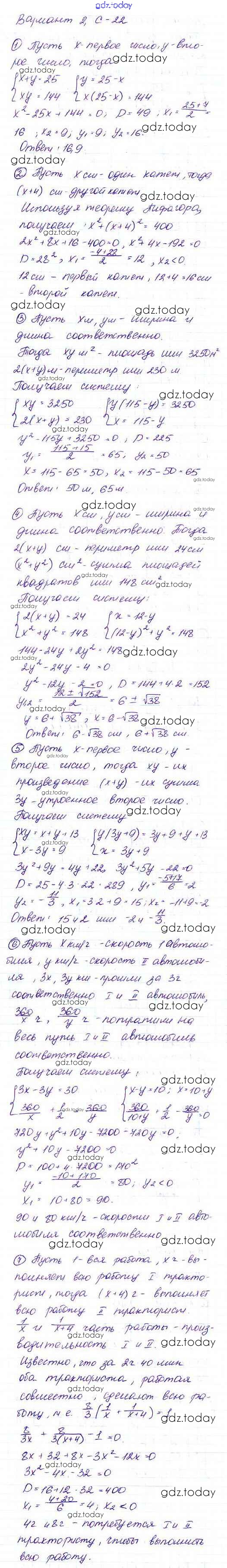 Ответы к Вариант 2 Решение к самостоятельным работам С-22 Дидактическим материалам по Алгебре для 9 класса Макарычев, Миндюк Просвещение 2015
