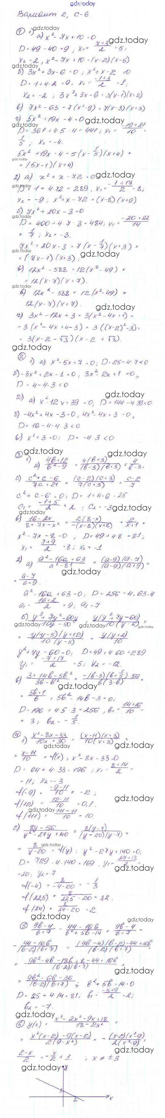На страницах сайта gdz.today вы найдете учебный и вспомогательный материал, направленный на улучшения знаний школьной программы. ГДЗ - онлайн мир знаний Вариант 2 Решение к самостоятельным работам С-6 Дидактическим материалам по Алгебре для 9 класса Макарычев, Миндюк Просвещение 2015
