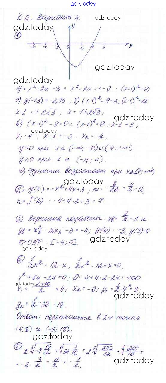 На страницах сайта gdz.today вы найдете учебный и вспомогательный материал, направленный на улучшения знаний школьной программы. ГДЗ - онлайн мир знаний КР-2 Решение к контрольным работам Вариант 4 Дидактическим материалам по Алгебре для 9 класса Макарычев, Миндюк Просвещение 2015