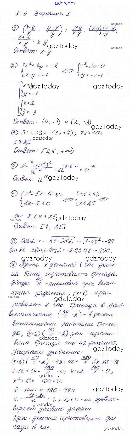 На страницах сайта gdz.today вы найдете учебный и вспомогательный материал, направленный на улучшения знаний школьной программы. ГДЗ - онлайн мир знаний КР-9 Решение к контрольным работам Вариант 1 Дидактическим материалам по Алгебре для 9 класса Макарычев, Миндюк Просвещение 2015