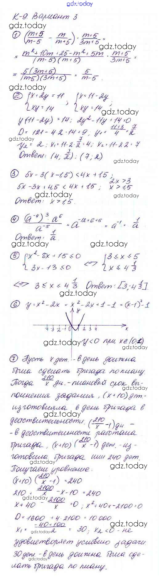 На страницах сайта gdz.today вы найдете учебный и вспомогательный материал, направленный на улучшения знаний школьной программы. ГДЗ - онлайн мир знаний КР-9 Решение к контрольным работам Вариант 3 Дидактическим материалам по Алгебре для 9 класса Макарычев, Миндюк Просвещение 2015
