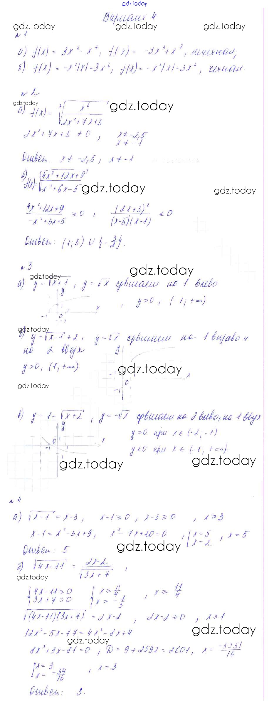 Ответы к КР-3. Степенная функция Решение к контрольным работам вариант 4 Дидактическим материалам по Алгебре для 9 класса Зив, Гольдич Виктория плюс 2013