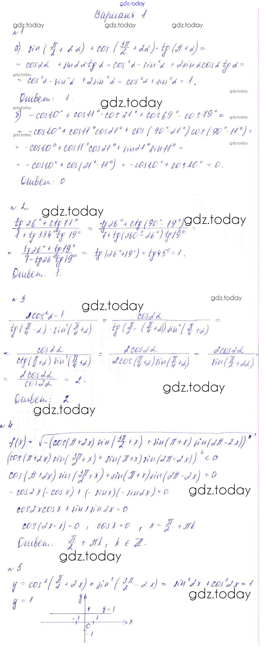 На страницах сайта gdz.today вы найдете учебный и вспомогательный материал, направленный на улучшения знаний школьной программы. ГДЗ - онлайн мир знаний КР-5. Формулы сложения. Формулы приведения Решение к контрольным работам вариант 1 Дидактическим материалам по Алгебре для 9 класса Зив, Гольдич Виктория плюс 2013