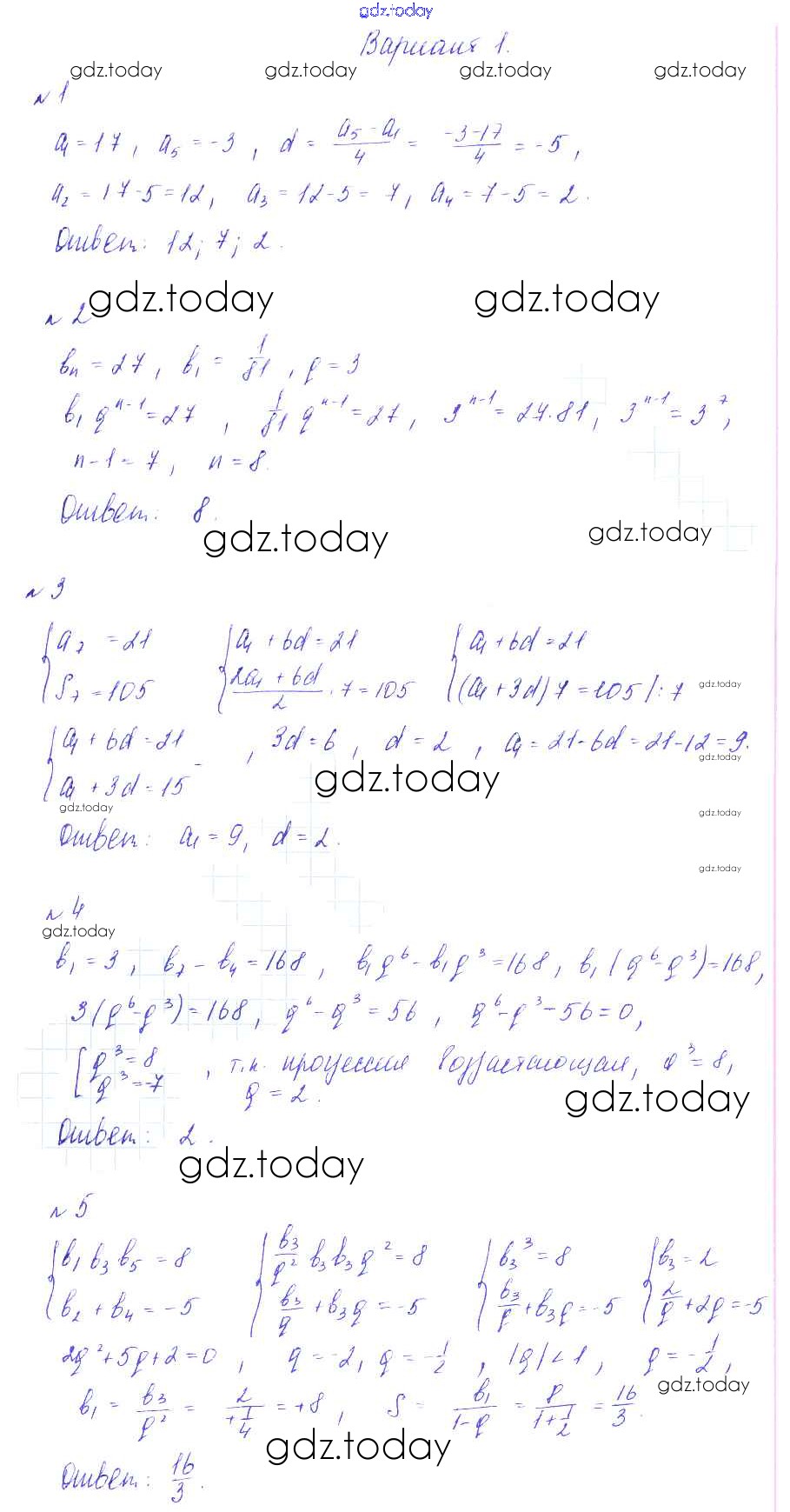 Ответы к КР-6. Прогрессии Решение к контрольным работам вариант 1 Дидактическим материалам по Алгебре для 9 класса Зив, Гольдич Виктория плюс 2013