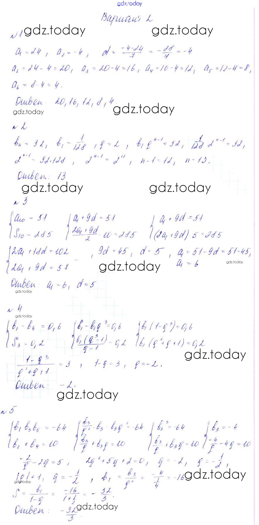 Ответы к КР-6. Прогрессии Решение к контрольным работам вариант 2 Дидактическим материалам по Алгебре для 9 класса Зив, Гольдич Виктория плюс 2013