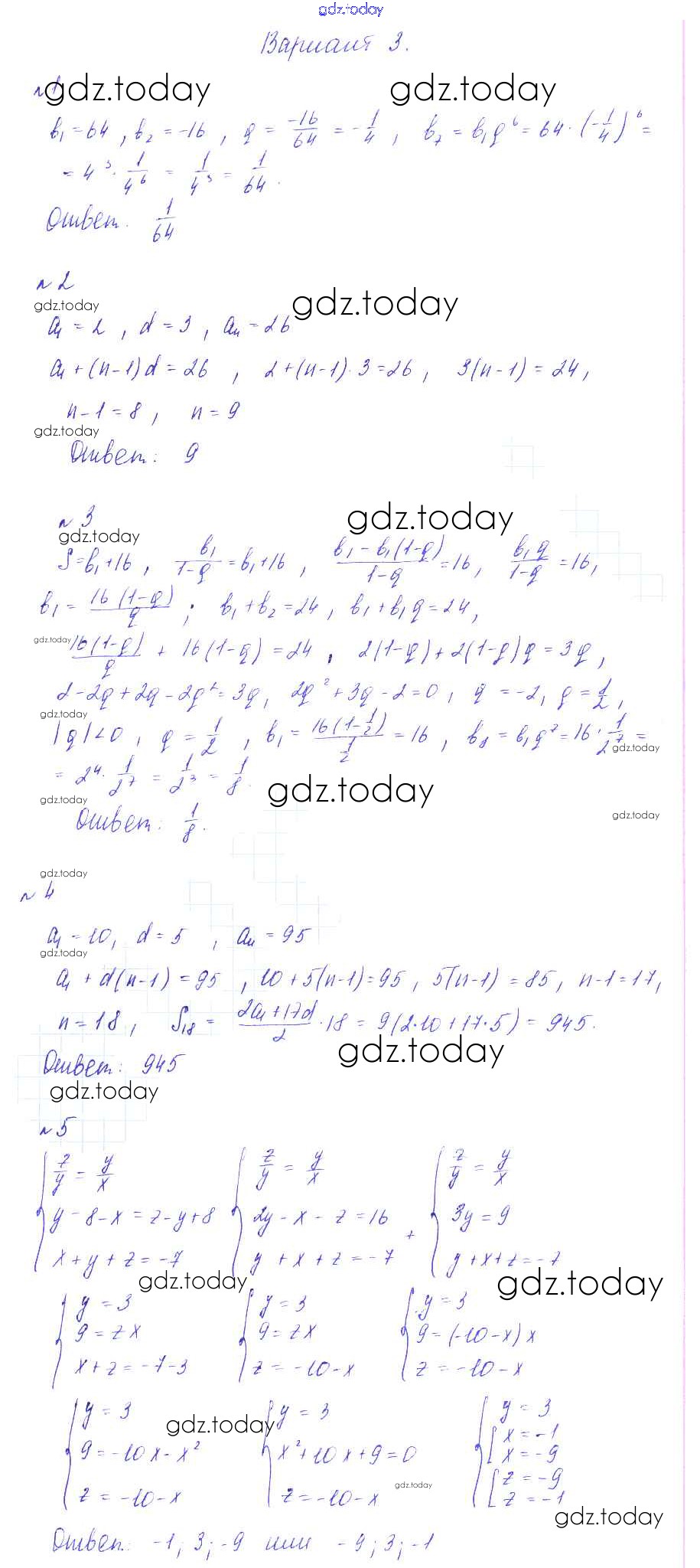 Ответы к КР-6. Прогрессии Решение к контрольным работам вариант 3 Дидактическим материалам по Алгебре для 9 класса Зив, Гольдич Виктория плюс 2013