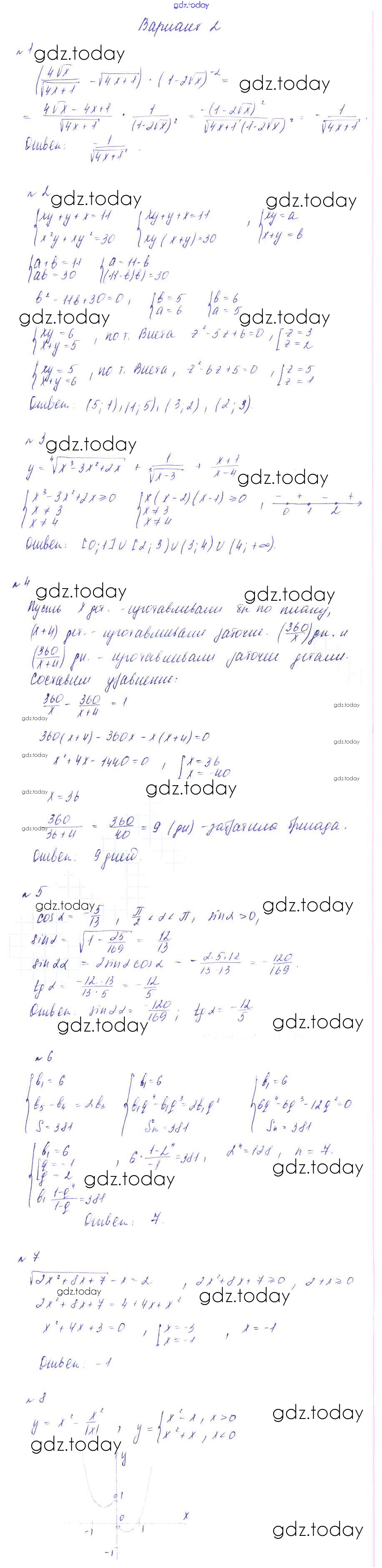 На страницах сайта gdz.today вы найдете учебный и вспомогательный материал, направленный на улучшения знаний школьной программы. ГДЗ - онлайн мир знаний КР-7. Итоговая Решение к контрольным работам вариант 2 Дидактическим материалам по Алгебре для 9 класса Зив, Гольдич Виктория плюс 2013