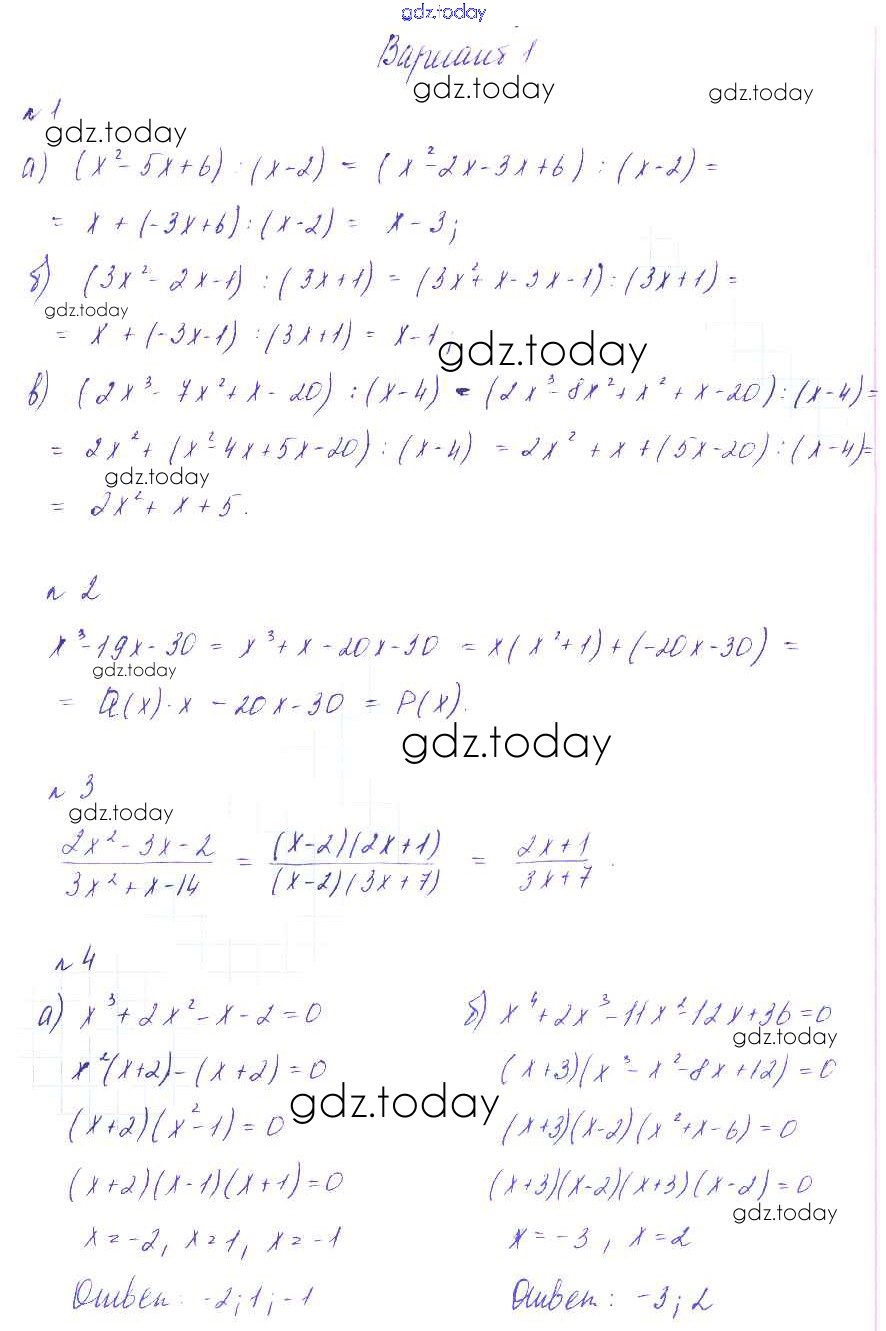 На страницах сайта gdz.today вы найдете учебный и вспомогательный материал, направленный на улучшения знаний школьной программы. ГДЗ - онлайн мир знаний СР-1. Деление многочленов. Решение алгебраических уравнений Решение к самостоятельным работам вариант 1 Дидактическим материалам по Алгебре для 9 класса Зив, Гольдич Виктория плюс 2013