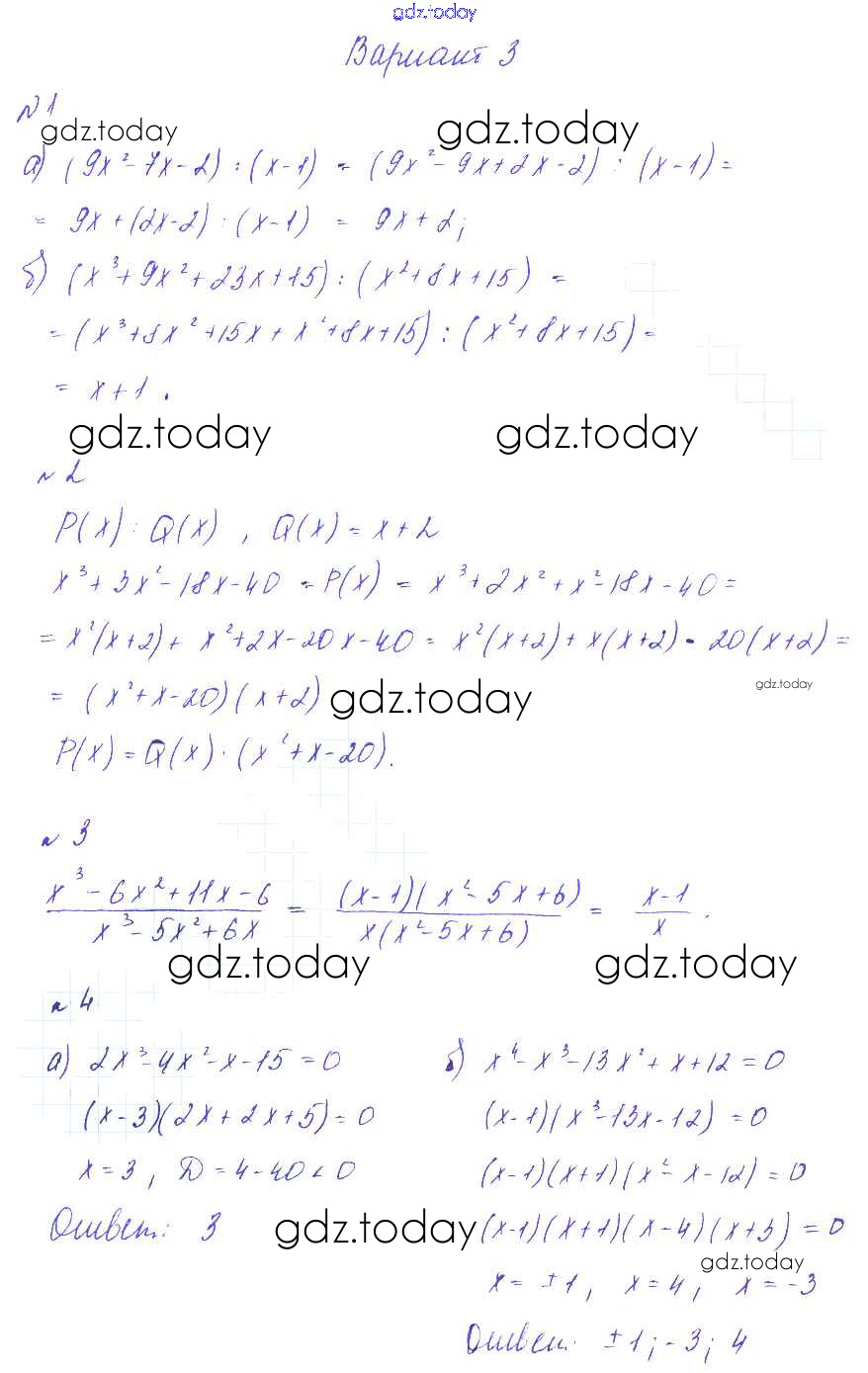 На страницах сайта gdz.today вы найдете учебный и вспомогательный материал, направленный на улучшения знаний школьной программы. ГДЗ - онлайн мир знаний СР-1. Деление многочленов. Решение алгебраических уравнений Решение к самостоятельным работам вариант 3 Дидактическим материалам по Алгебре для 9 класса Зив, Гольдич Виктория плюс 2013