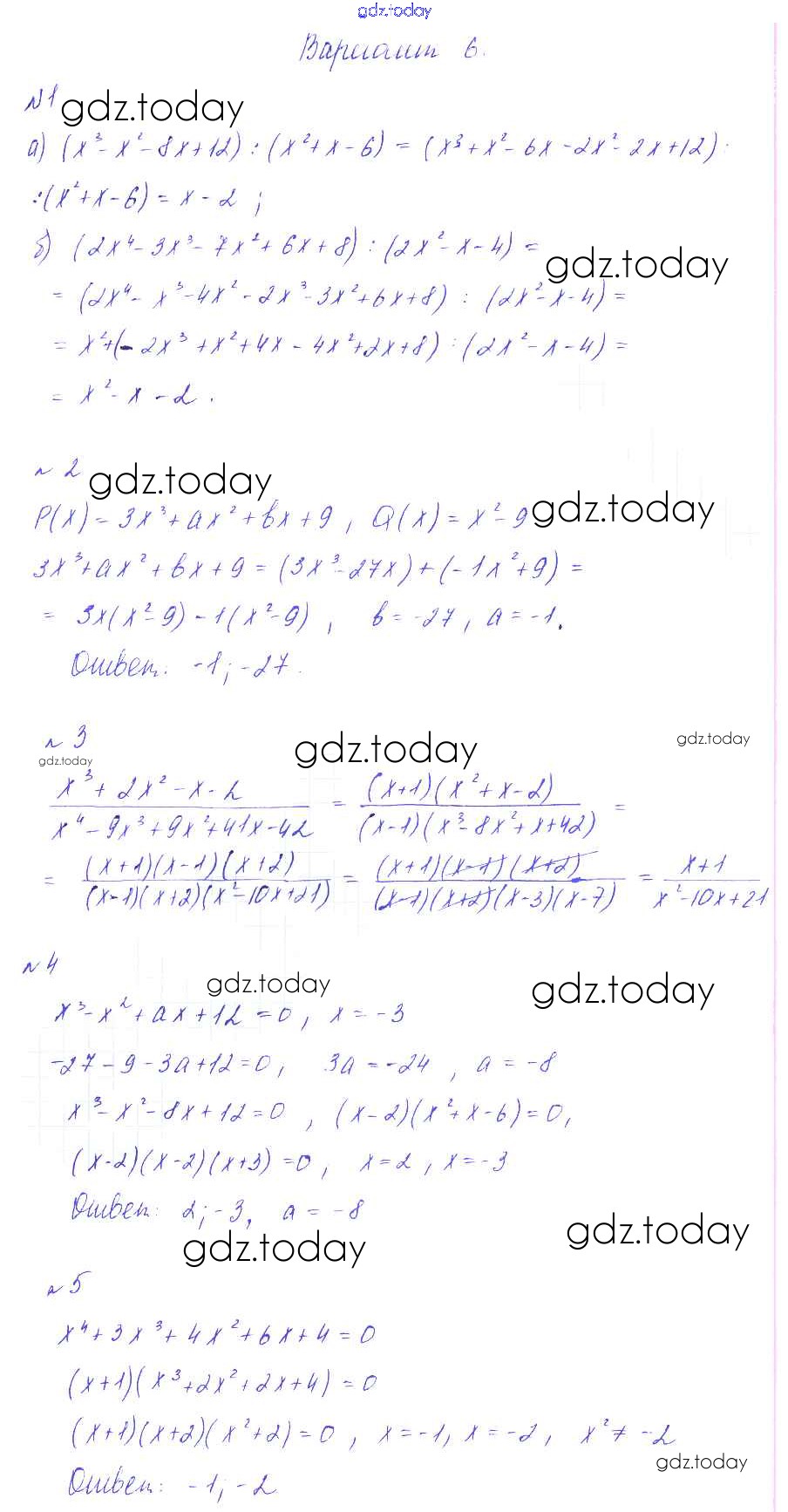 На страницах сайта gdz.today вы найдете учебный и вспомогательный материал, направленный на улучшения знаний школьной программы. ГДЗ - онлайн мир знаний СР-1. Деление многочленов. Решение алгебраических уравнений Решение к самостоятельным работам вариант 6 Дидактическим материалам по Алгебре для 9 класса Зив, Гольдич Виктория плюс 2013