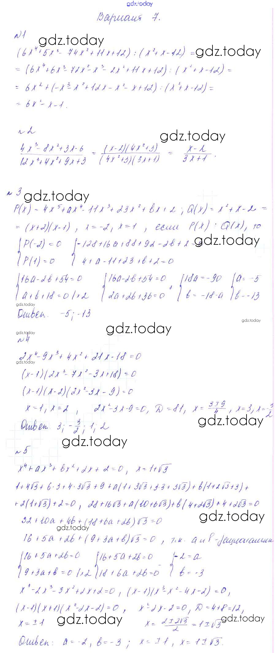 Ответы к СР-1. Деление многочленов. Решение алгебраических уравнений Решение к самостоятельным работам вариант 7 Дидактическим материалам по Алгебре для 9 класса Зив, Гольдич Виктория плюс 2013
