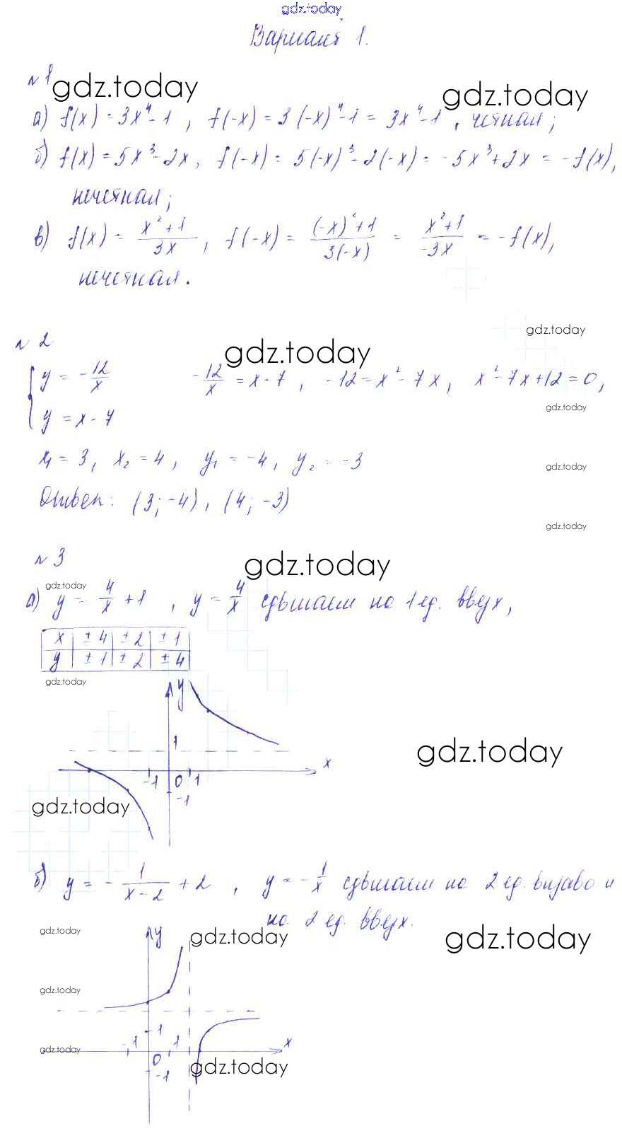 На страницах сайта gdz.today вы найдете учебный и вспомогательный материал, направленный на улучшения знаний школьной программы. ГДЗ - онлайн мир знаний СР-10. Четность и нечетность функции. Функция у = k делить на х Решение к самостоятельным работам вариант 1 Дидактическим материалам по Алгебре для 9 класса Зив, Гольдич Виктория плюс 2013