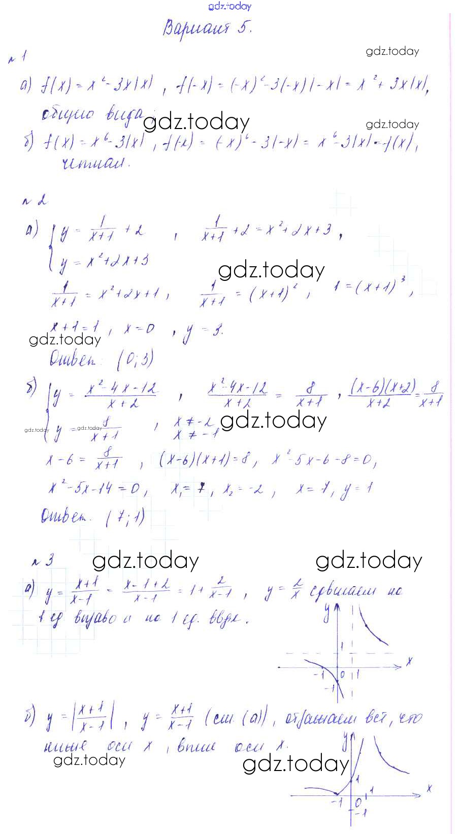 Ответы к СР-10. Четность и нечетность функции. Функция у = k делить на х Решение к самостоятельным работам вариант 5 Дидактическим материалам по Алгебре для 9 класса Зив, Гольдич Виктория плюс 2013