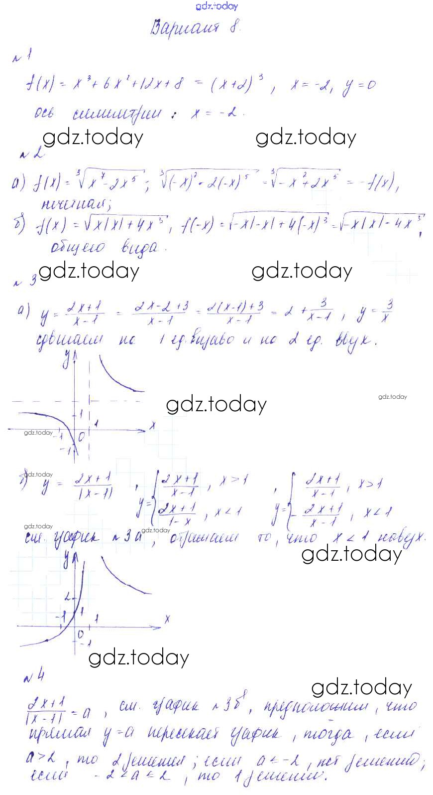 На страницах сайта gdz.today вы найдете учебный и вспомогательный материал, направленный на улучшения знаний школьной программы. ГДЗ - онлайн мир знаний СР-10. Четность и нечетность функции. Функция у = k делить на х Решение к самостоятельным работам вариант 8 Дидактическим материалам по Алгебре для 9 класса Зив, Гольдич Виктория плюс 2013
