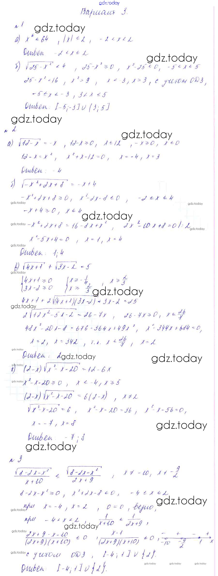 На страницах сайта gdz.today вы найдете учебный и вспомогательный материал, направленный на улучшения знаний школьной программы. ГДЗ - онлайн мир знаний СР-11. Неравенства и уравнения, содержащие степень Решение к самостоятельным работам вариант 3 Дидактическим материалам по Алгебре для 9 класса Зив, Гольдич Виктория плюс 2013