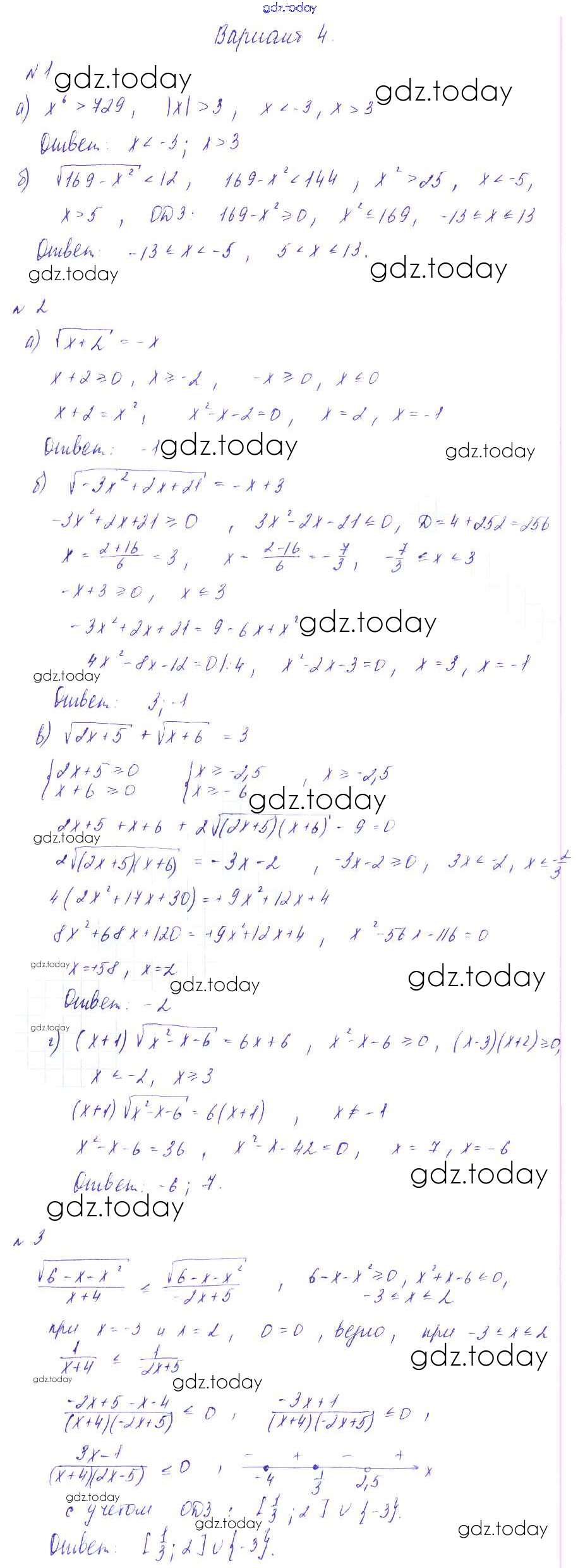 На страницах сайта gdz.today вы найдете учебный и вспомогательный материал, направленный на улучшения знаний школьной программы. ГДЗ - онлайн мир знаний СР-11. Неравенства и уравнения, содержащие степень Решение к самостоятельным работам вариант 4 Дидактическим материалам по Алгебре для 9 класса Зив, Гольдич Виктория плюс 2013