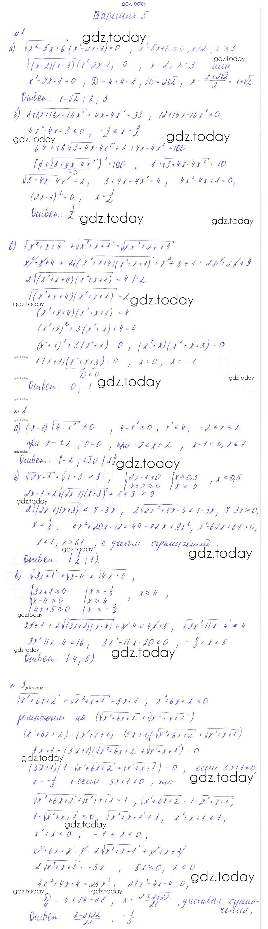 На страницах сайта gdz.today вы найдете учебный и вспомогательный материал, направленный на улучшения знаний школьной программы. ГДЗ - онлайн мир знаний СР-11. Неравенства и уравнения, содержащие степень Решение к самостоятельным работам вариант 5 Дидактическим материалам по Алгебре для 9 класса Зив, Гольдич Виктория плюс 2013
