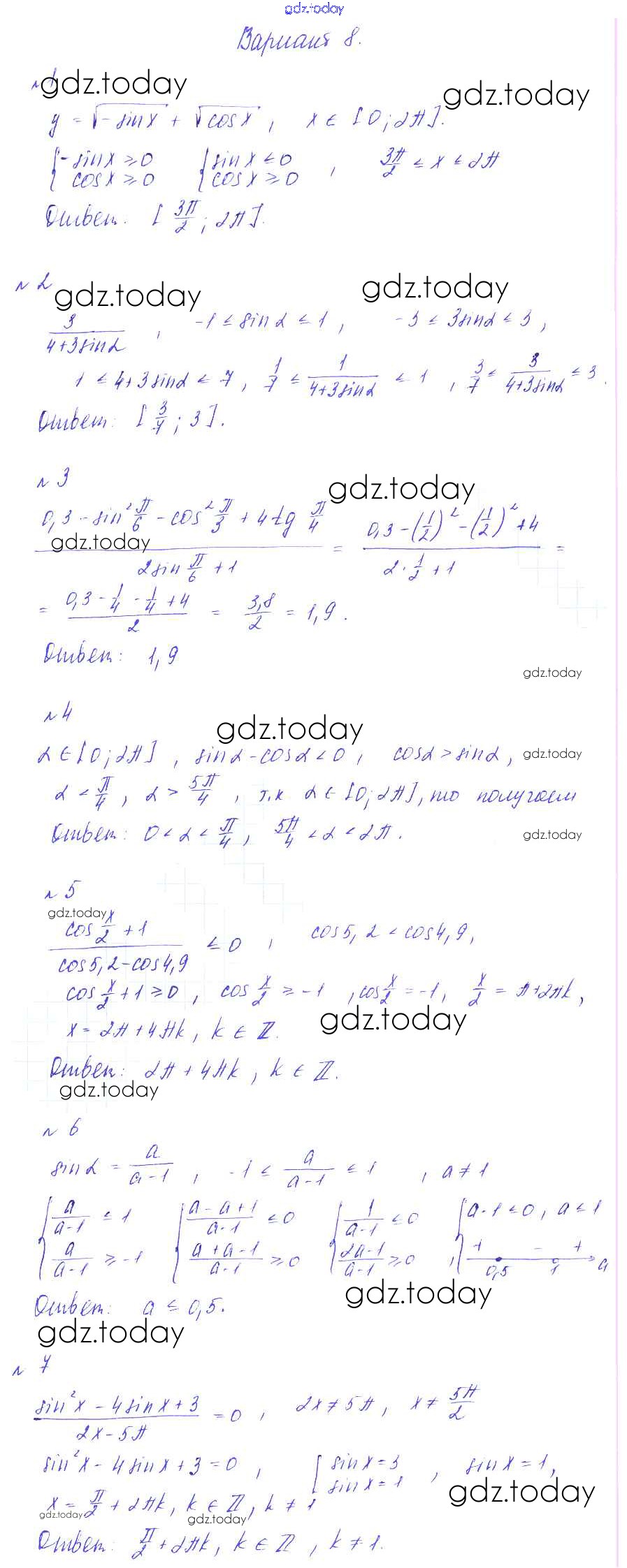 На страницах сайта gdz.today вы найдете учебный и вспомогательный материал, направленный на улучшения знаний школьной программы. ГДЗ - онлайн мир знаний СР-12. Радианная мера угла Решение к самостоятельным работам вариант 8 Дидактическим материалам по Алгебре для 9 класса Зив, Гольдич Виктория плюс 2013