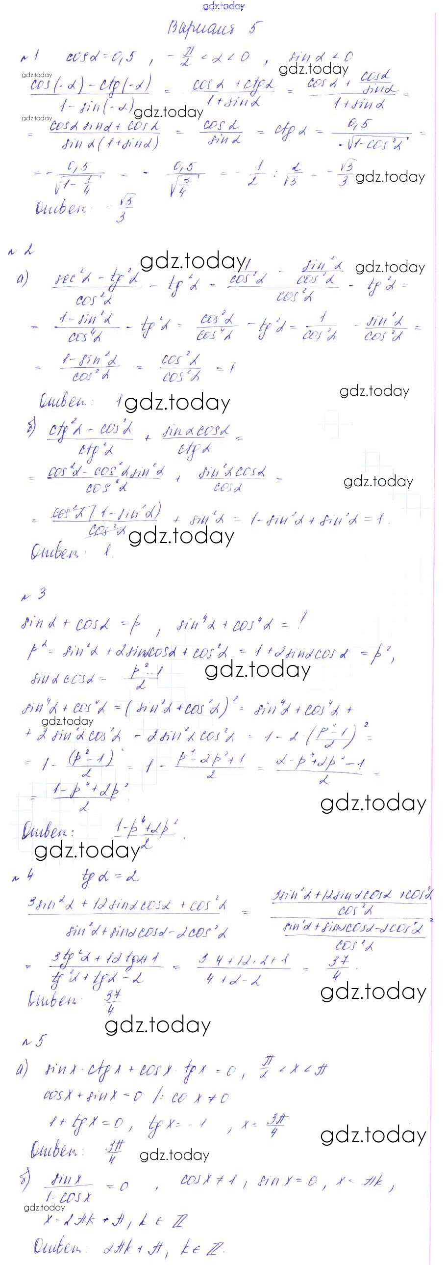 На страницах сайта gdz.today вы найдете учебный и вспомогательный материал, направленный на улучшения знаний школьной программы. ГДЗ - онлайн мир знаний СР-13. Тригонометрические тождества Решение к самостоятельным работам вариант 5 Дидактическим материалам по Алгебре для 9 класса Зив, Гольдич Виктория плюс 2013