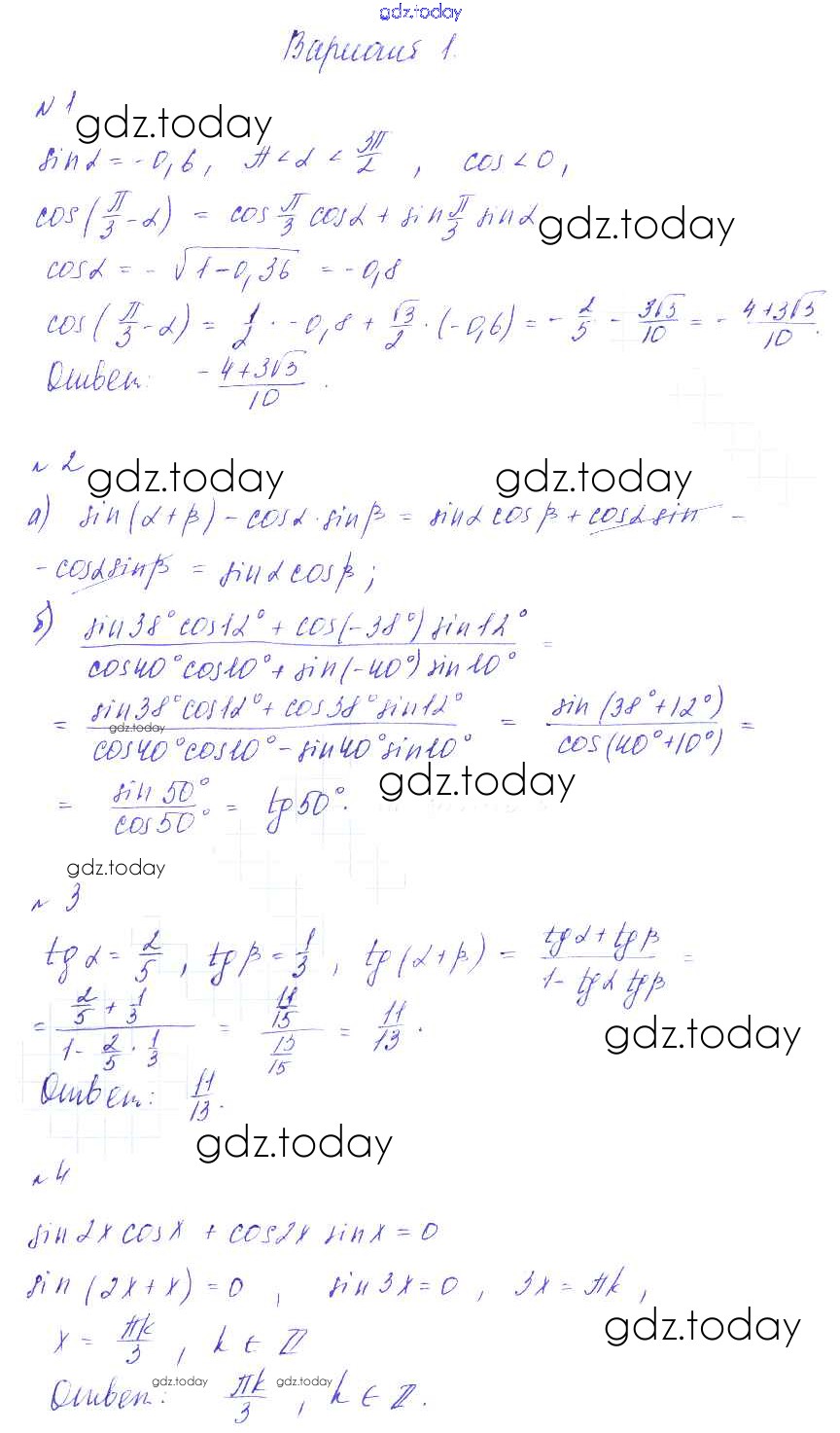 На страницах сайта gdz.today вы найдете учебный и вспомогательный материал, направленный на улучшения знаний школьной программы. ГДЗ - онлайн мир знаний СР-14. Формулы сложения Решение к самостоятельным работам вариант 1 Дидактическим материалам по Алгебре для 9 класса Зив, Гольдич Виктория плюс 2013