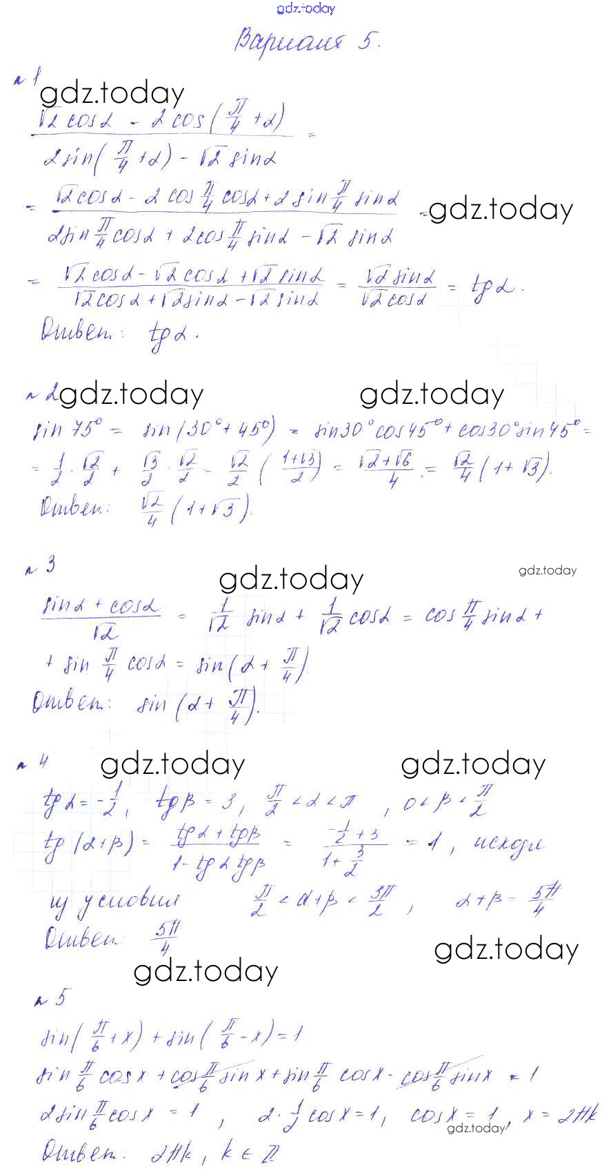 На страницах сайта gdz.today вы найдете учебный и вспомогательный материал, направленный на улучшения знаний школьной программы. ГДЗ - онлайн мир знаний СР-14. Формулы сложения Решение к самостоятельным работам вариант 5 Дидактическим материалам по Алгебре для 9 класса Зив, Гольдич Виктория плюс 2013