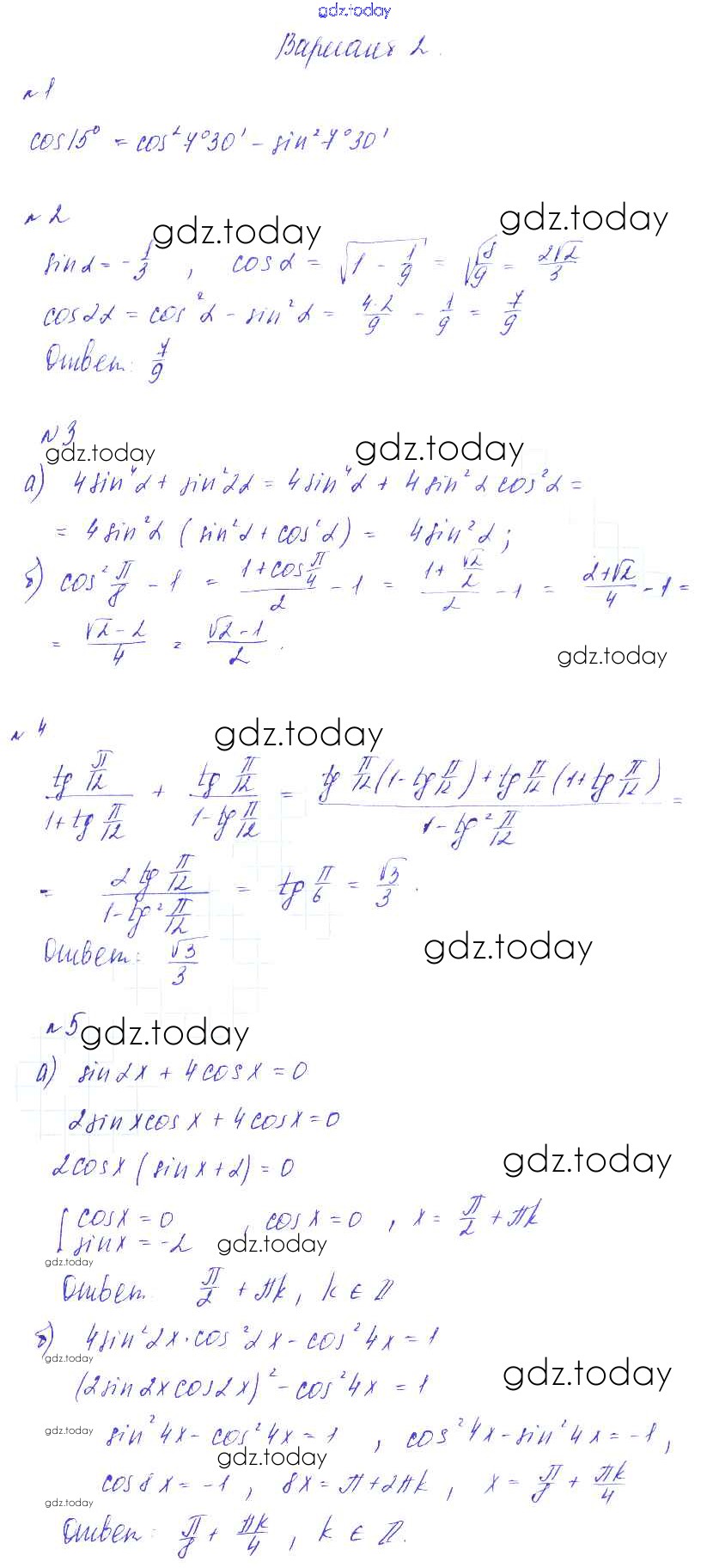 На страницах сайта gdz.today вы найдете учебный и вспомогательный материал, направленный на улучшения знаний школьной программы. ГДЗ - онлайн мир знаний СР-15. Синус и косинус двойного угла Решение к самостоятельным работам вариант 2 Дидактическим материалам по Алгебре для 9 класса Зив, Гольдич Виктория плюс 2013