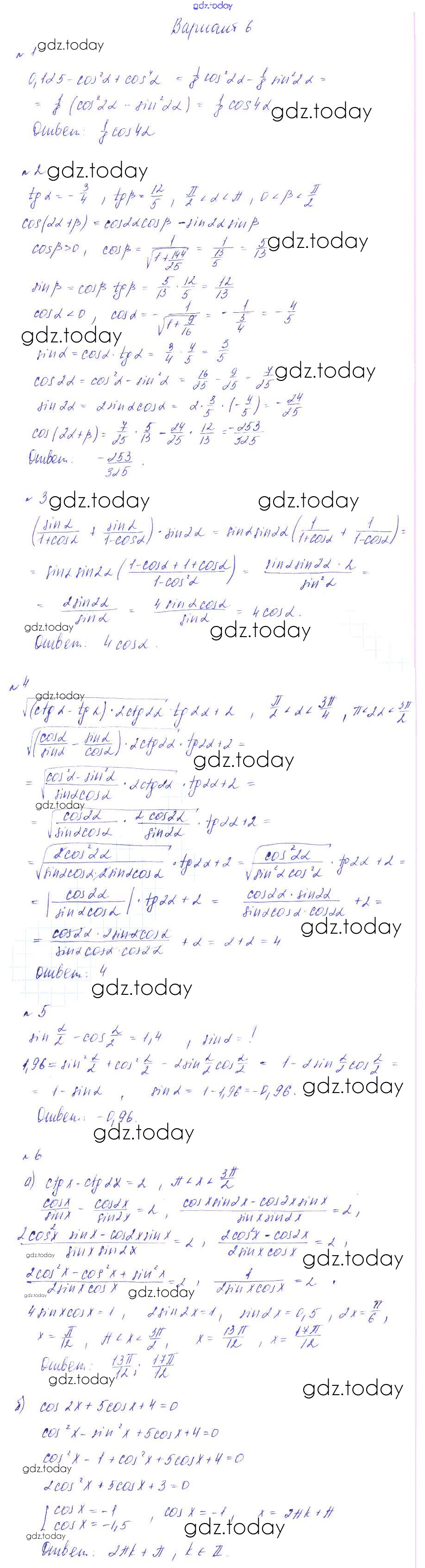 На страницах сайта gdz.today вы найдете учебный и вспомогательный материал, направленный на улучшения знаний школьной программы. ГДЗ - онлайн мир знаний СР-15. Синус и косинус двойного угла Решение к самостоятельным работам вариант 6 Дидактическим материалам по Алгебре для 9 класса Зив, Гольдич Виктория плюс 2013