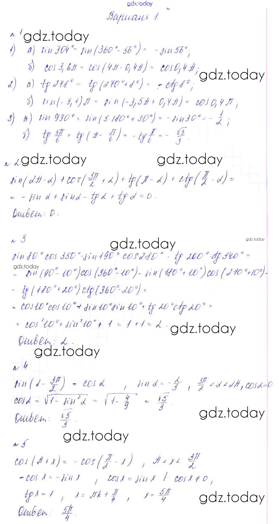 На страницах сайта gdz.today вы найдете учебный и вспомогательный материал, направленный на улучшения знаний школьной программы. ГДЗ - онлайн мир знаний СР-16. Формулы приведения Решение к самостоятельным работам вариант 1 Дидактическим материалам по Алгебре для 9 класса Зив, Гольдич Виктория плюс 2013