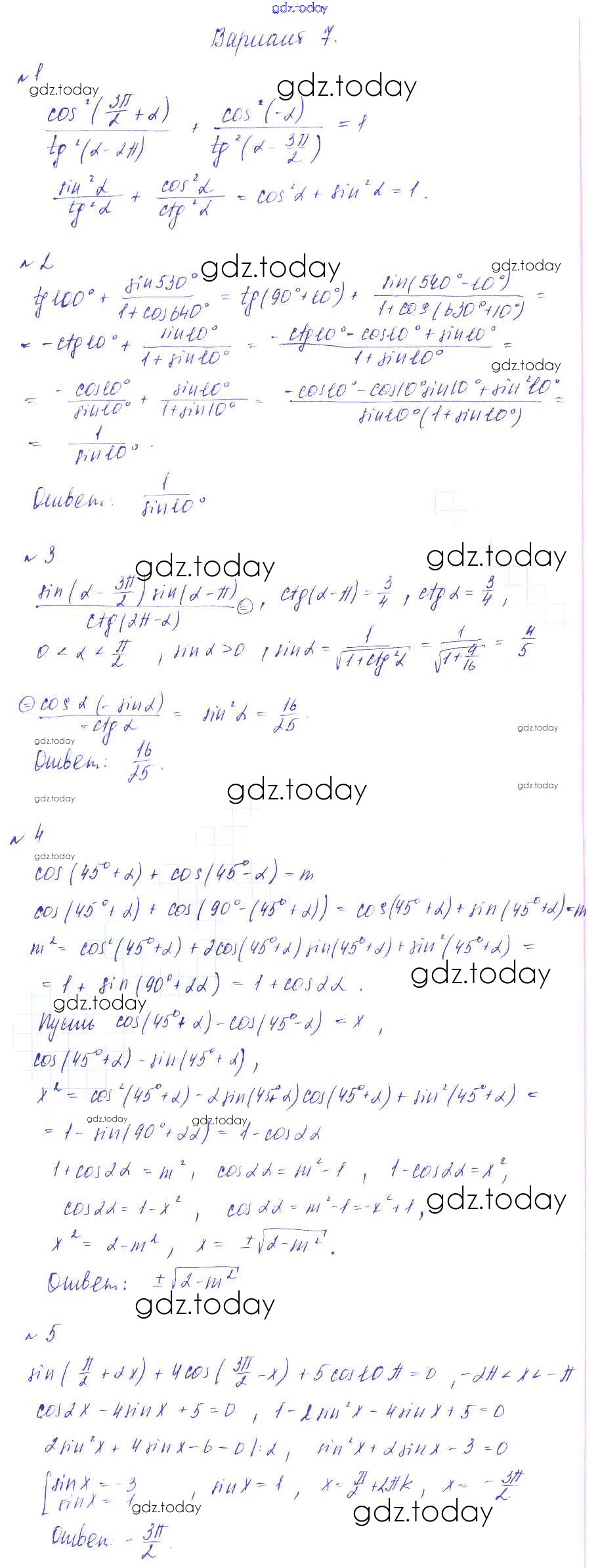 Ответы к СР-16. Формулы приведения Решение к самостоятельным работам вариант 7 Дидактическим материалам по Алгебре для 9 класса Зив, Гольдич Виктория плюс 2013