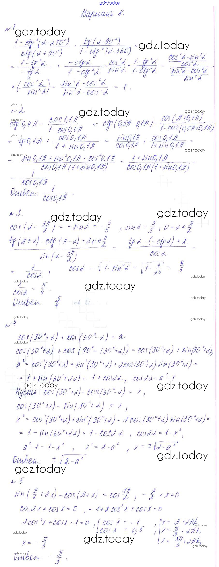 На страницах сайта gdz.today вы найдете учебный и вспомогательный материал, направленный на улучшения знаний школьной программы. ГДЗ - онлайн мир знаний СР-16. Формулы приведения Решение к самостоятельным работам вариант 8 Дидактическим материалам по Алгебре для 9 класса Зив, Гольдич Виктория плюс 2013
