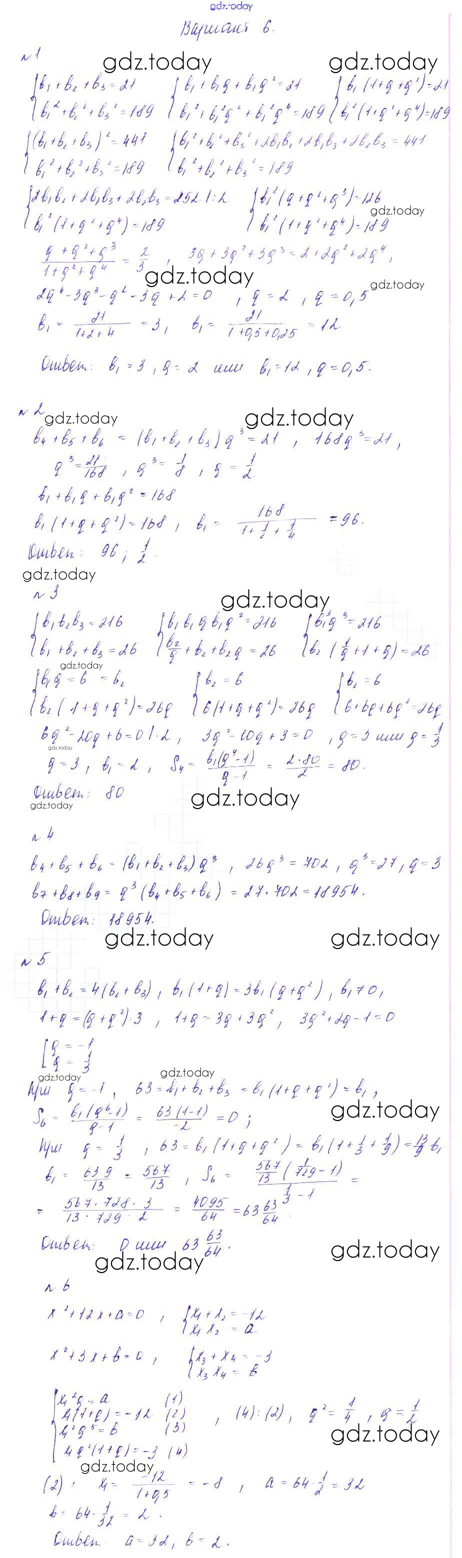 На страницах сайта gdz.today вы найдете учебный и вспомогательный материал, направленный на улучшения знаний школьной программы. ГДЗ - онлайн мир знаний СР-18. Геометрическая прогрессия Решение к самостоятельным работам вариант 6 Дидактическим материалам по Алгебре для 9 класса Зив, Гольдич Виктория плюс 2013