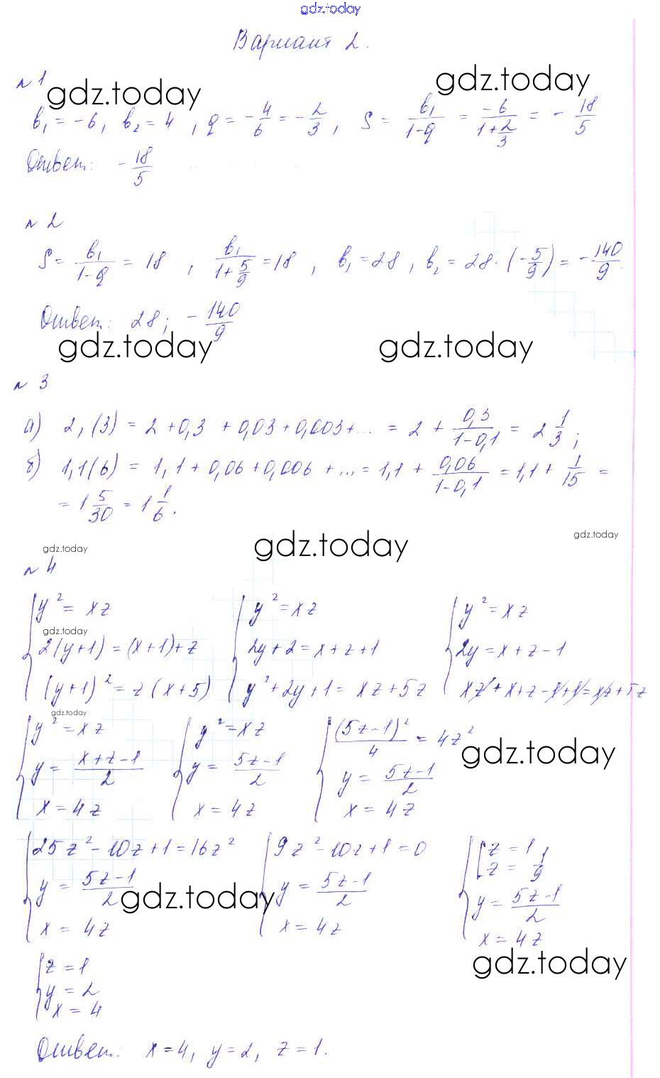 Ответы к СР-19. Бесконечно убывающая геометрическая прогрессия. Смешанные задачи на прогрессии Решение к самостоятельным работам вариант 2 Дидактическим материалам по Алгебре для 9 класса Зив, Гольдич Виктория плюс 2013