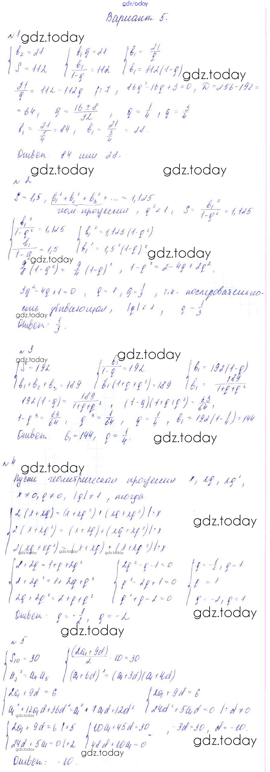 Ответы к СР-19. Бесконечно убывающая геометрическая прогрессия. Смешанные задачи на прогрессии Решение к самостоятельным работам вариант 5 Дидактическим материалам по Алгебре для 9 класса Зив, Гольдич Виктория плюс 2013
