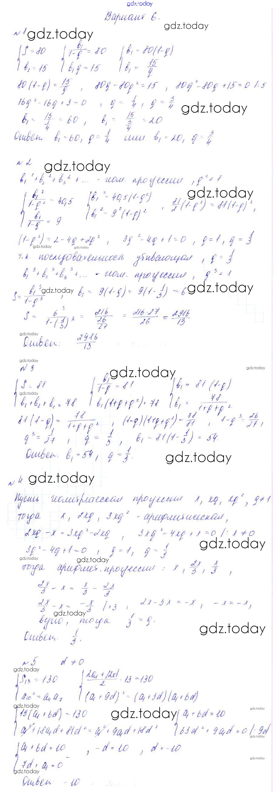 Ответы к СР-19. Бесконечно убывающая геометрическая прогрессия. Смешанные задачи на прогрессии Решение к самостоятельным работам вариант 6 Дидактическим материалам по Алгебре для 9 класса Зив, Гольдич Виктория плюс 2013