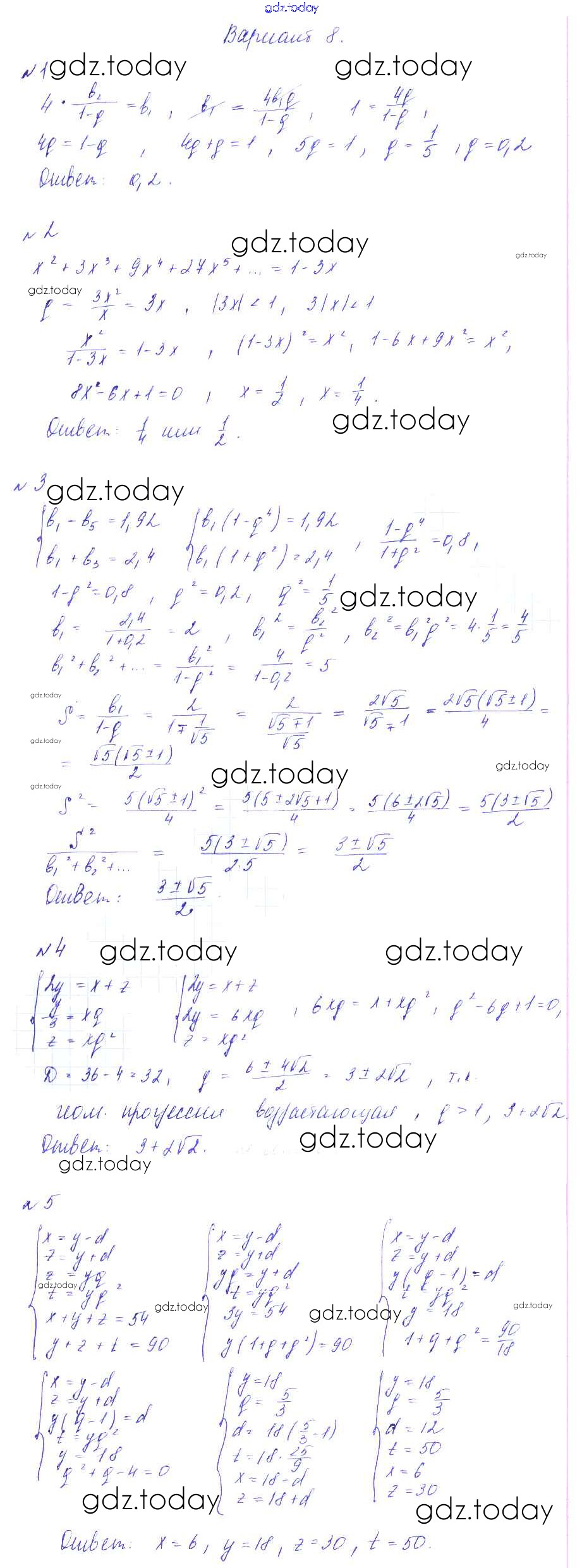 Ответы к СР-19. Бесконечно убывающая геометрическая прогрессия. Смешанные задачи на прогрессии Решение к самостоятельным работам вариант 8 Дидактическим материалам по Алгебре для 9 класса Зив, Гольдич Виктория плюс 2013