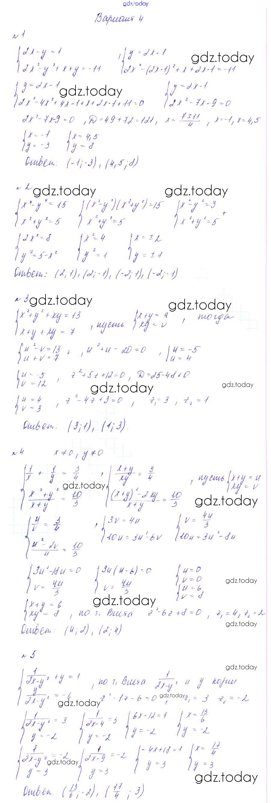 Ответы к СР-3. Системы нелинейных уравнений Решение к самостоятельным работам вариант 4 Дидактическим материалам по Алгебре для 9 класса Зив, Гольдич Виктория плюс 2013